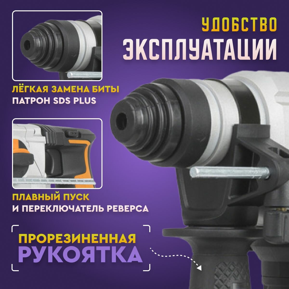 | Минусы: | Нет реверса! Но на перфораторах с силой удара 5дж и выше реверса никогда не бывает! |