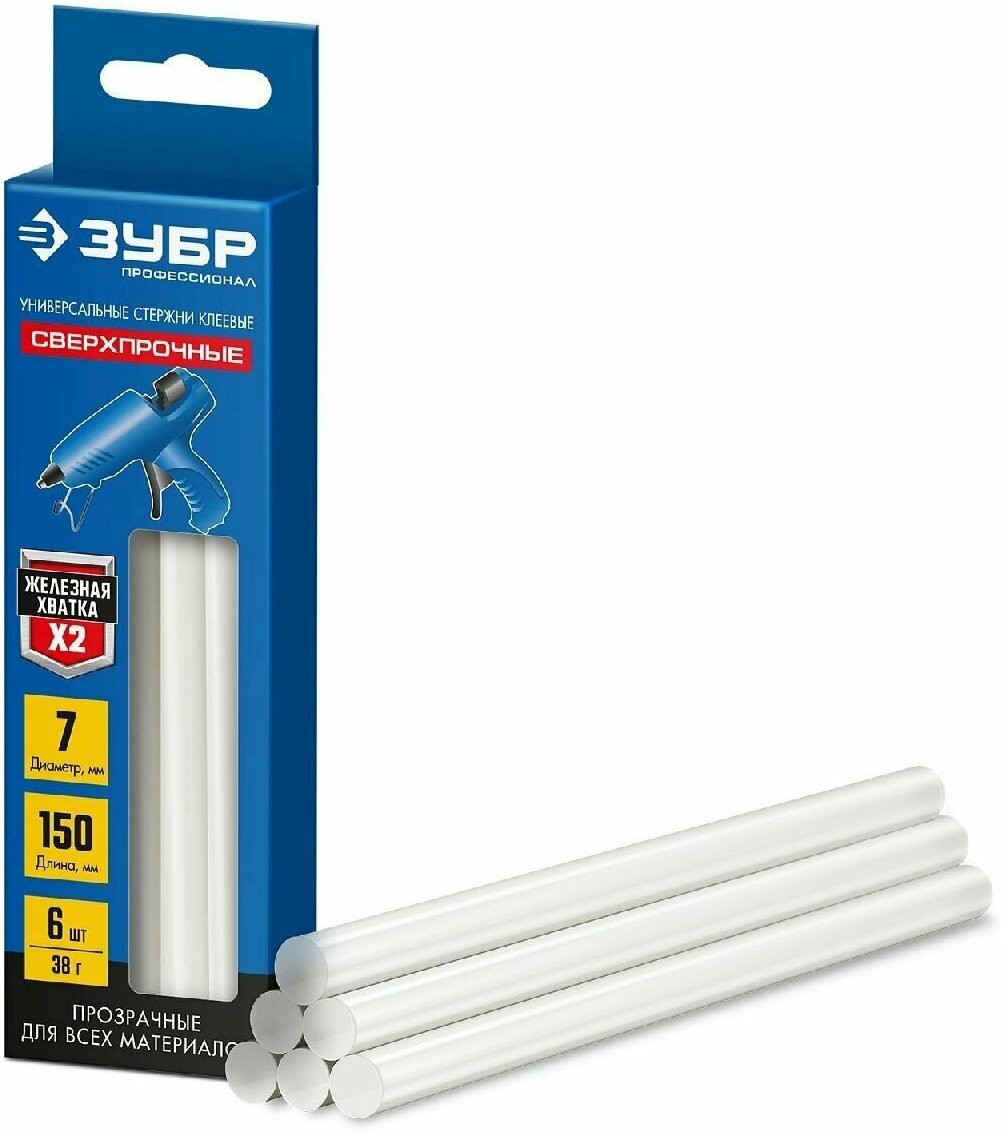 ЗУБР Профессионал прозрачные сверхпрочные клеевые стержни, d 7 х 150 мм (7-8 мм) 6 шт. 38 г