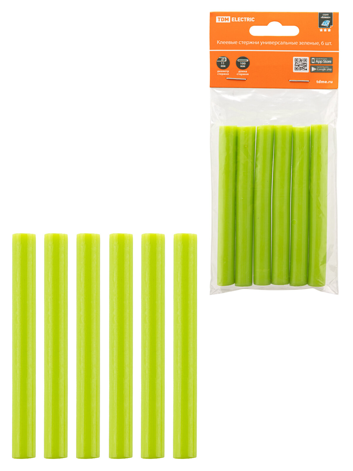 Купить Клеевые стержни универсальные зеленые, 11 мм x 100 мм, 6 шт, "Алмаз" TDM