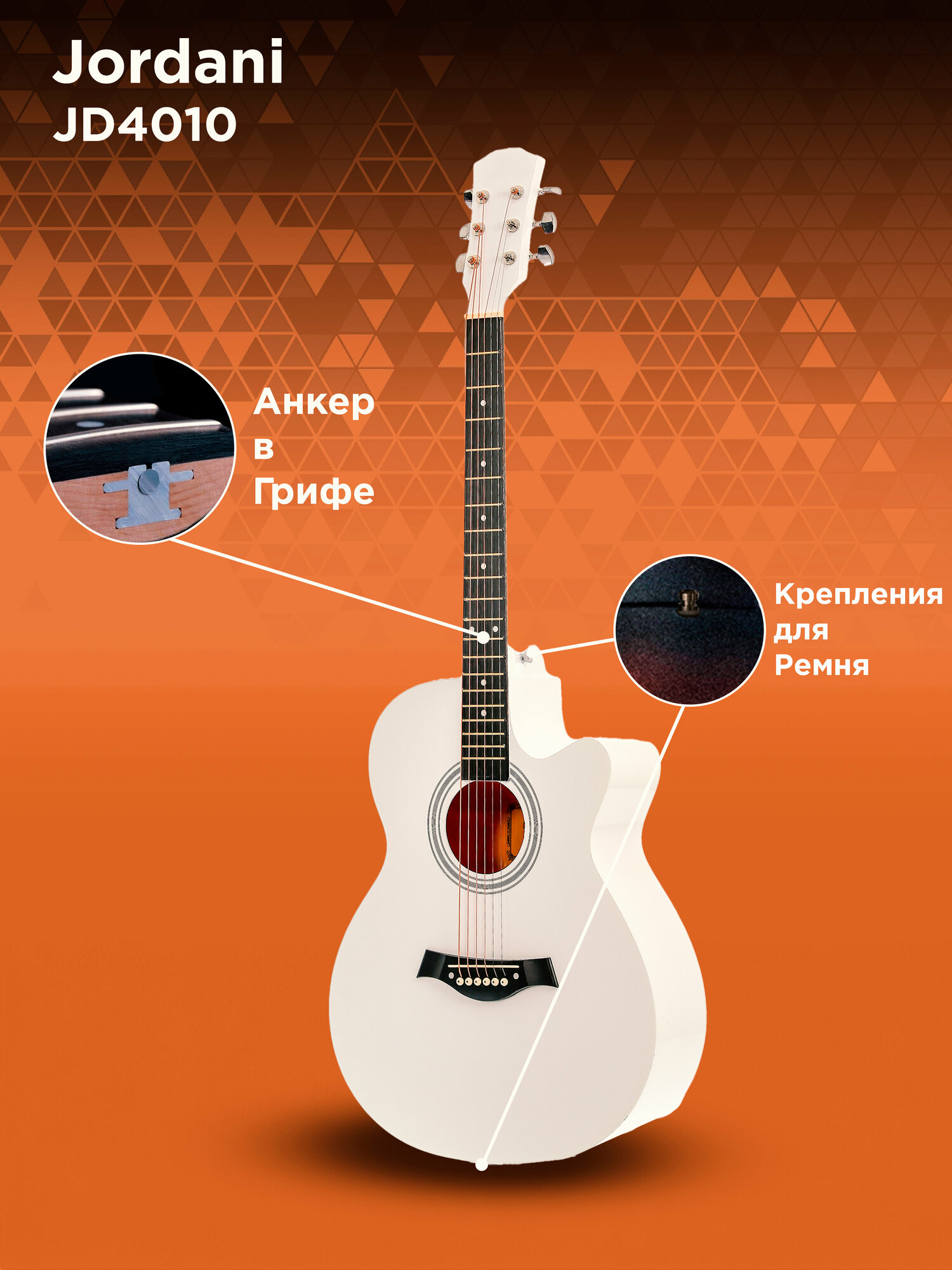 СохранитьГитара акустическая 4/4, 40" Белая Jordani E4010 White интересное:
