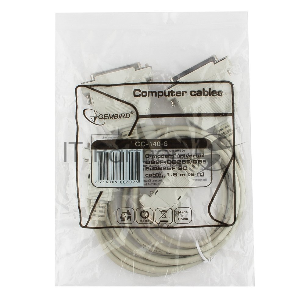 Кабель 0-модемный Gembird CC-140-6, универсальный 25F+9F/25F+9F, 1.8м, пакет