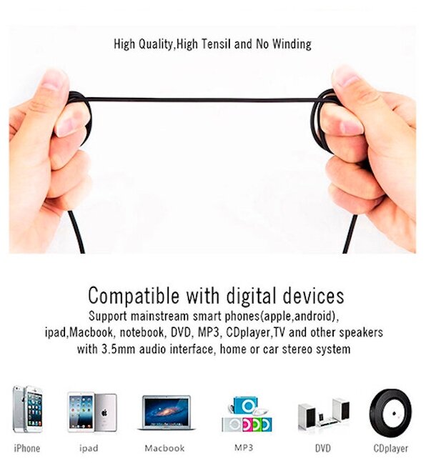Купить Аудио кабель jack 3.5 mm, черный, 1.0 м, Mobiledata