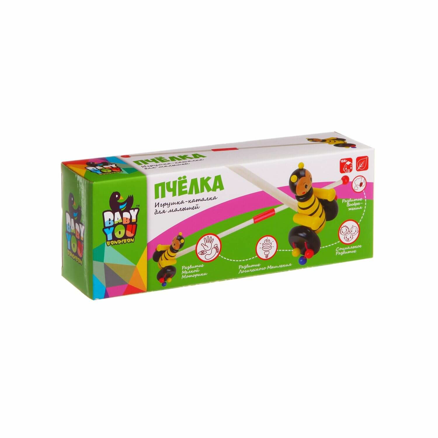 Игр. дерев., каталка с ручкой Пчелка, Bondibon 7 см