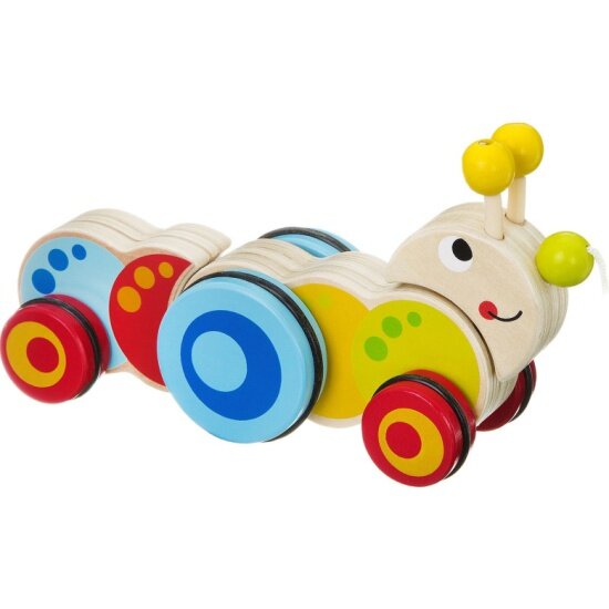 Игрушка из дерева Bondibon, Каталка с веревочкой Гусеница