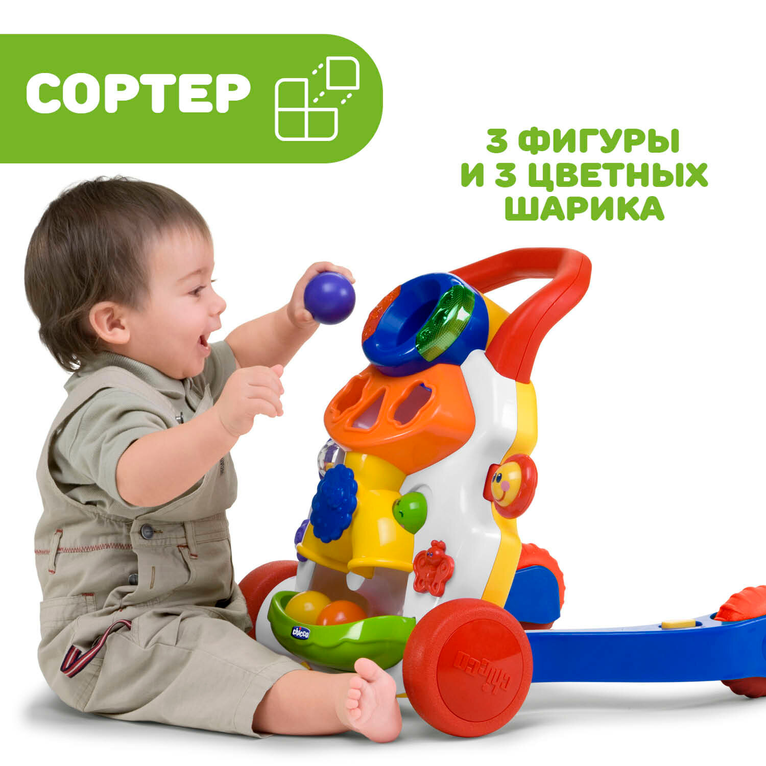 Ходунки каталка детские с ручкой CHICCO для девочек и мальчиков от 9 месяцев, музыкальный игровой развивающий центр с сортером