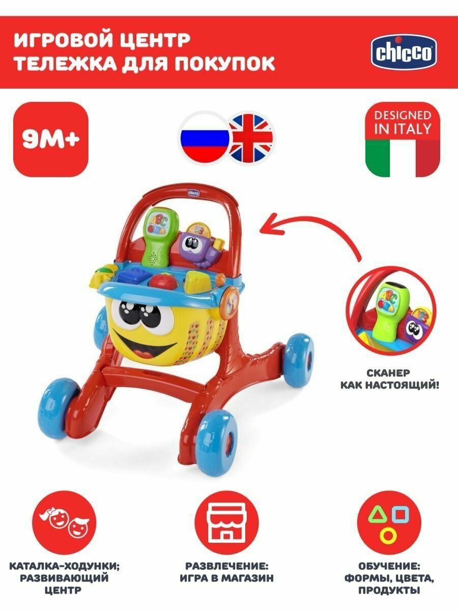 Игровой центр Chicco Тележка для покупок (рус/англ) 9м+
