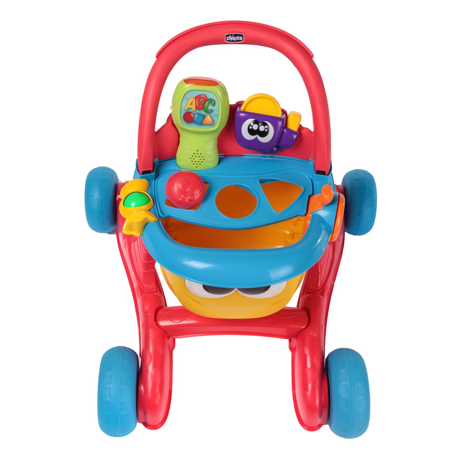 Ходунки каталка детские с ручкой, развивающая двуязычная игрушка на английском и русском языках CHICCO "Говорящая тележка" игровой центр с сортером для мальчиков и девочек от 9 месяцев