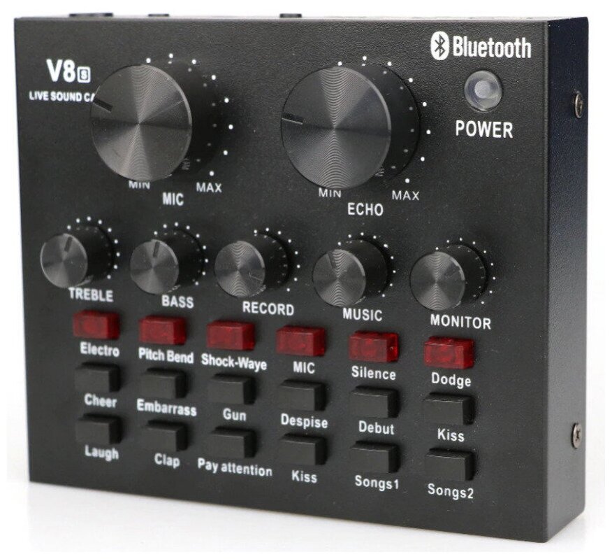 Профессиональная внешняя звуковая аудио карта с Bluetooth-V8 (микшерный пульт), Черный интересное: