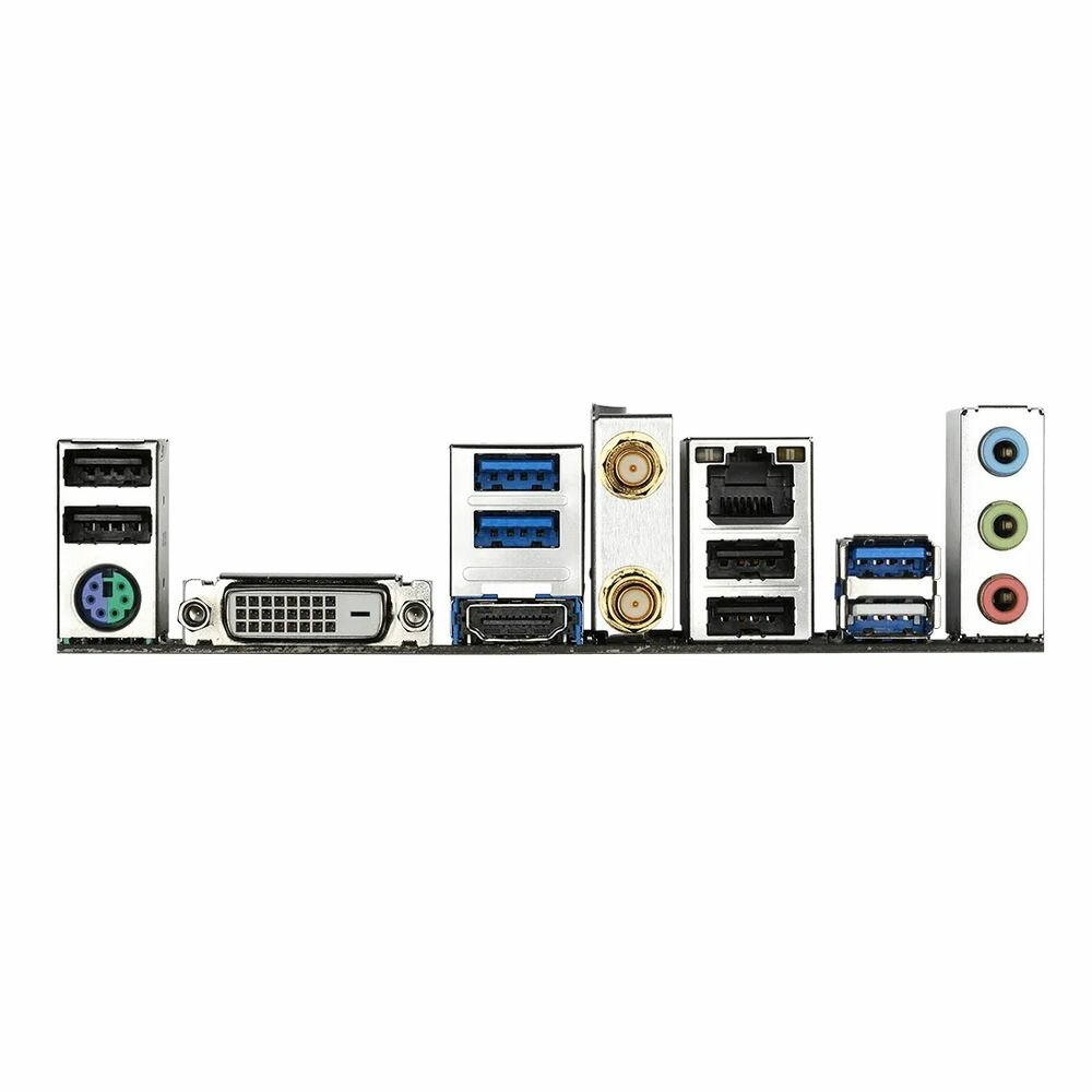 | Разъемы на задней панели | 2 x SMA (для антенны Wi-Fi), 4 x USB 2.0 Type-A, 4 x USB 3.2 Gen1 Type-A, DVI, DisplayPort, HDMI, LAN RJ-45, выход S/PDIF оптический |