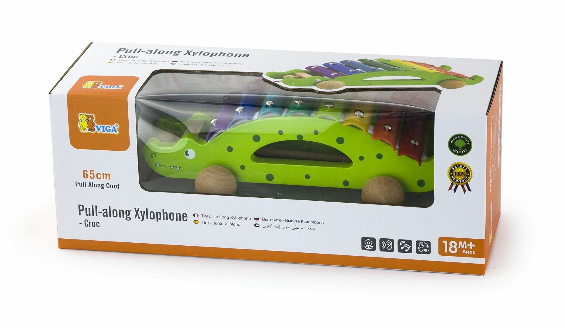 Ксилофон-каталка VIGA "Крокодил", дерево, в коробке