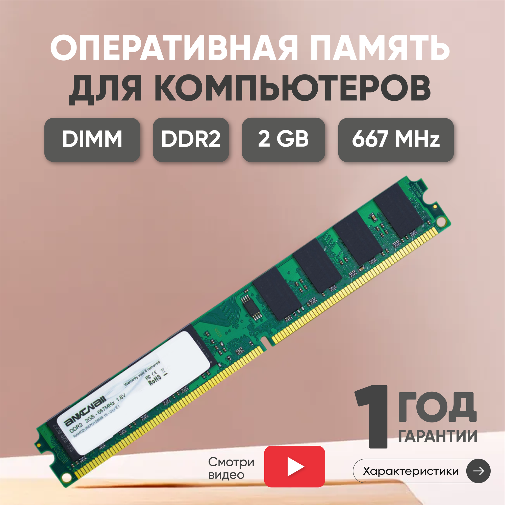 Модуль памяти Ankowall DIMM DDR2, 2ГБ, 667МГц, PC2-5300 SDRAM, 1.8В, UNBUFF интересное: