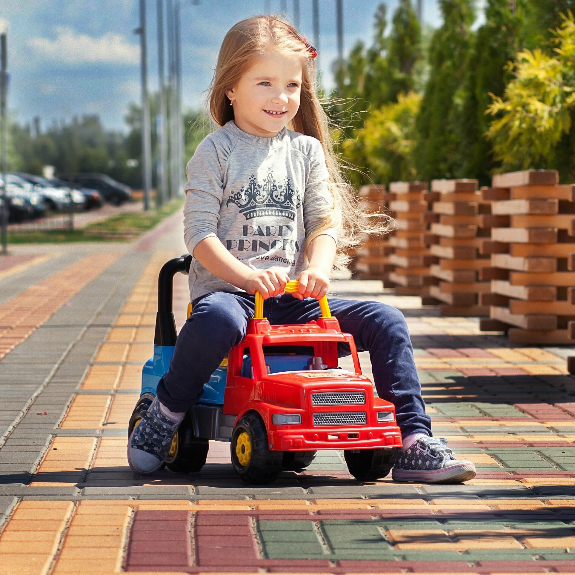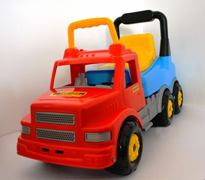 Широкие колеса и спинка делают машину устойчивой и безопасной. Спинка откидывается и туда можно что-нибудь положить. Можно ездить дома и на улице. Машина достаточно высокая и подойдёт лет до 4-5 точно. |