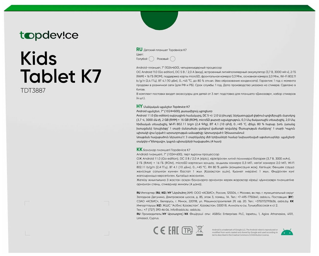 Ниже Вы можете прочитать отзывы на 7" Планшет Topdevice Kids Tablet K7 TDT3887_WI_D_BE_CIS, IPS, Wi-Fi, 2ГБ RAM + 16ГБ ROM, синий, ознакомится с подробными характеристиками, посмотреть интересные обзоры и фотографии на 7" Планшет Topdevice Kids Tablet K7 TDT3887_WI_D_BE_CIS, IPS, Wi-Fi, 2ГБ RAM + 16ГБ ROM, синий.