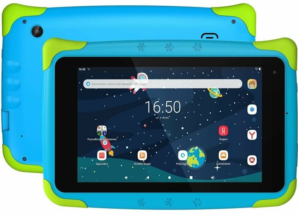 Этот планшет очень понравился моему сыну. Поэтому решил его купить, тем более что цена была очень доступная. Корпус в голубых и зеленых цветах. Неплохая цветопередача. Имеется 16 Гб встроенной памяти. Маловато, но ребенку хватает. Можно вставить карту памяти. В нем 4 ядра, ничего не тормозит. Работает без нареканий. Красивый и удобный планшет.
