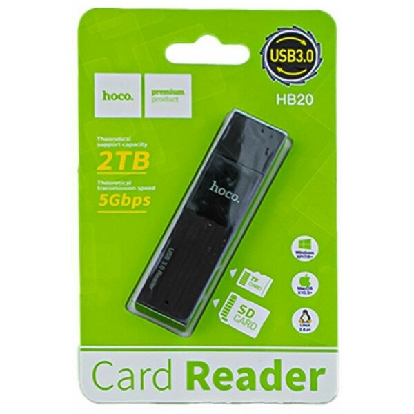 Картридер Hoco HB20 2TB 5Gbps USB3.0 чёрный интересное: