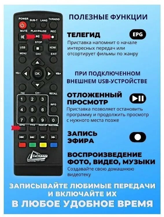 • Тв тюнер для телевизора, тв тюнер dvb t2, цифровая приставка для телевизора, 1080p, пульт ДУ, прием DVB-T2, вход HDMI интересное: