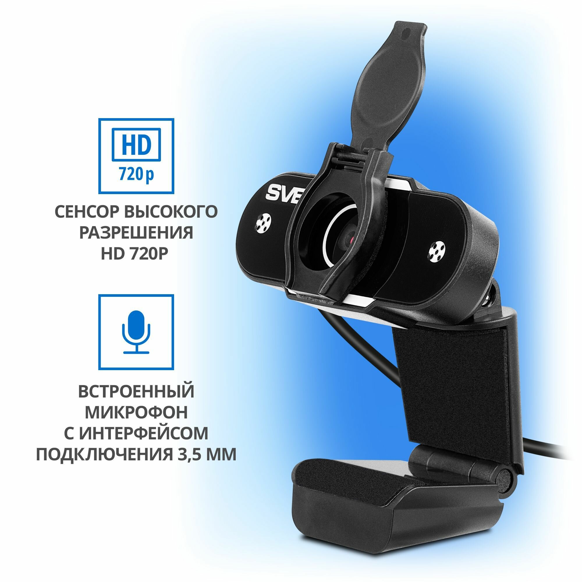 Веб-камера SVEN IC-915, 1 мегапиксель, 30 кадров в секунду, HD, микрофон jack 3,5 миллиметра