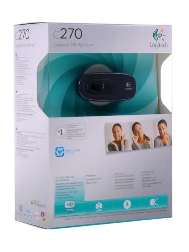 Веб-камера Logitech C270 (HD 720p/30fps, фокус постоянный, угол обзора 60°, кабель 1.5м) (арт. 960-000999, M/N: V-U0018) интересное: