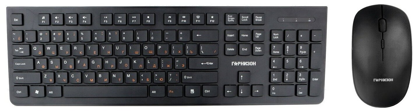 Комплект клавиатура+мышь беспроводная Гарнизон GKS-130,2.4 ГГц, черный, 104 клавиши, дополнительные функции м/медиа, 1600 DPI