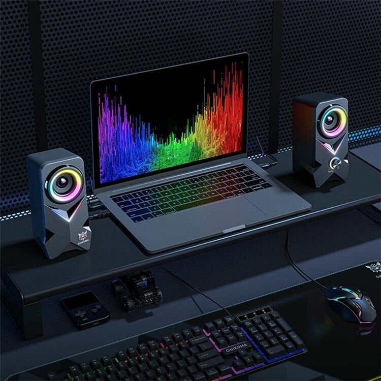 Купить Колонки компьютерные Onikuma L2 Bluetooth c RGB подсветкой, 10 Вт , акустическая система 2.0, питание от USB, черный