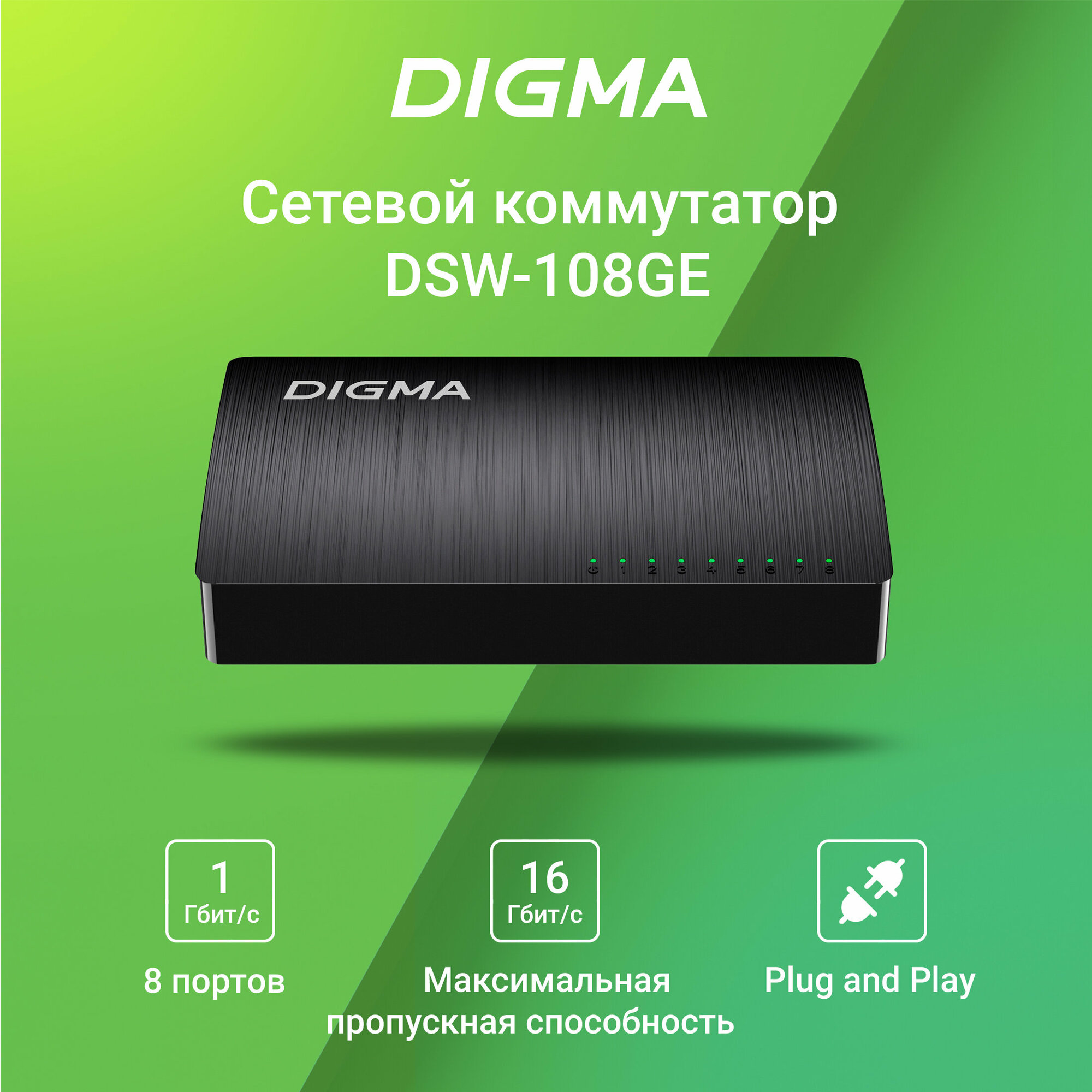 Коммутатор Digma DSW-108GE 8x1Гбит/с неуправляемый