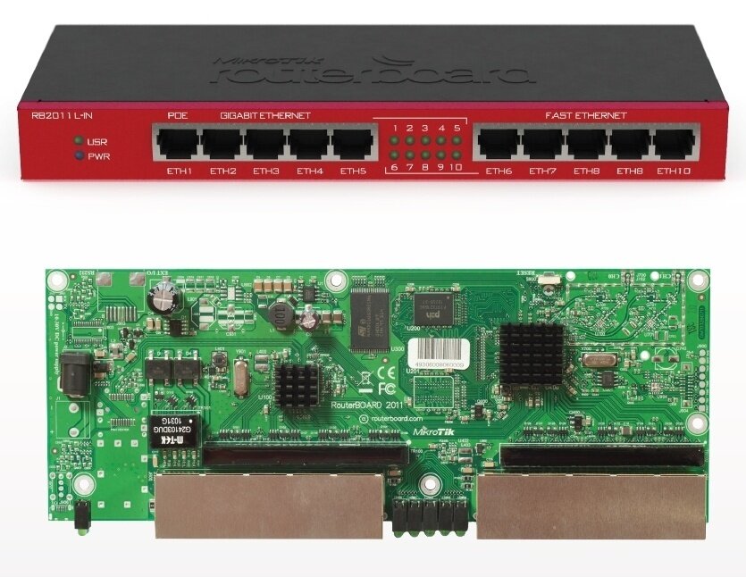 Купить MikroTik RouterBOARD 2011iLS with Atheros 74K MIPS CPU, 64MB RAM, 1x SFP port, 5xLAN, 5XGbit LAN, RouterOS L4, desktop case, PSU