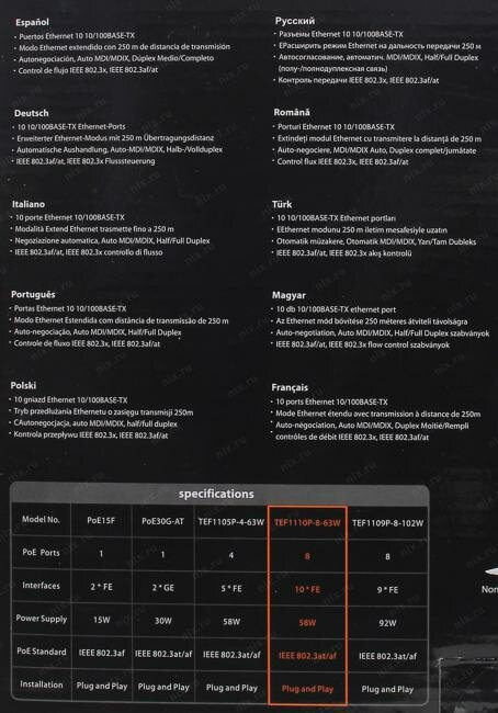 Неуправляемый коммутатор Tenda TEF1110P-8-63W интересное: