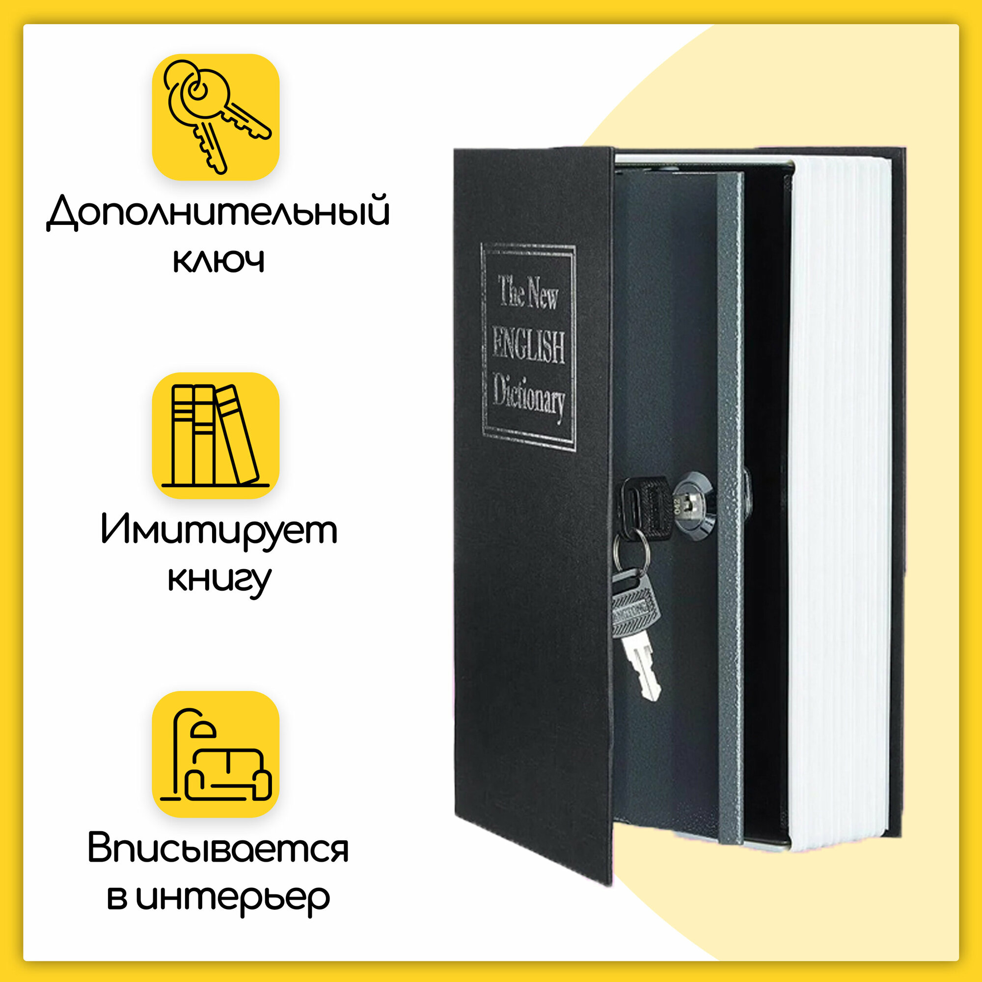 Книга-сейф для денег, шкатулка для денег и документов, с ключом 265x200x65 мм, черная интересное: