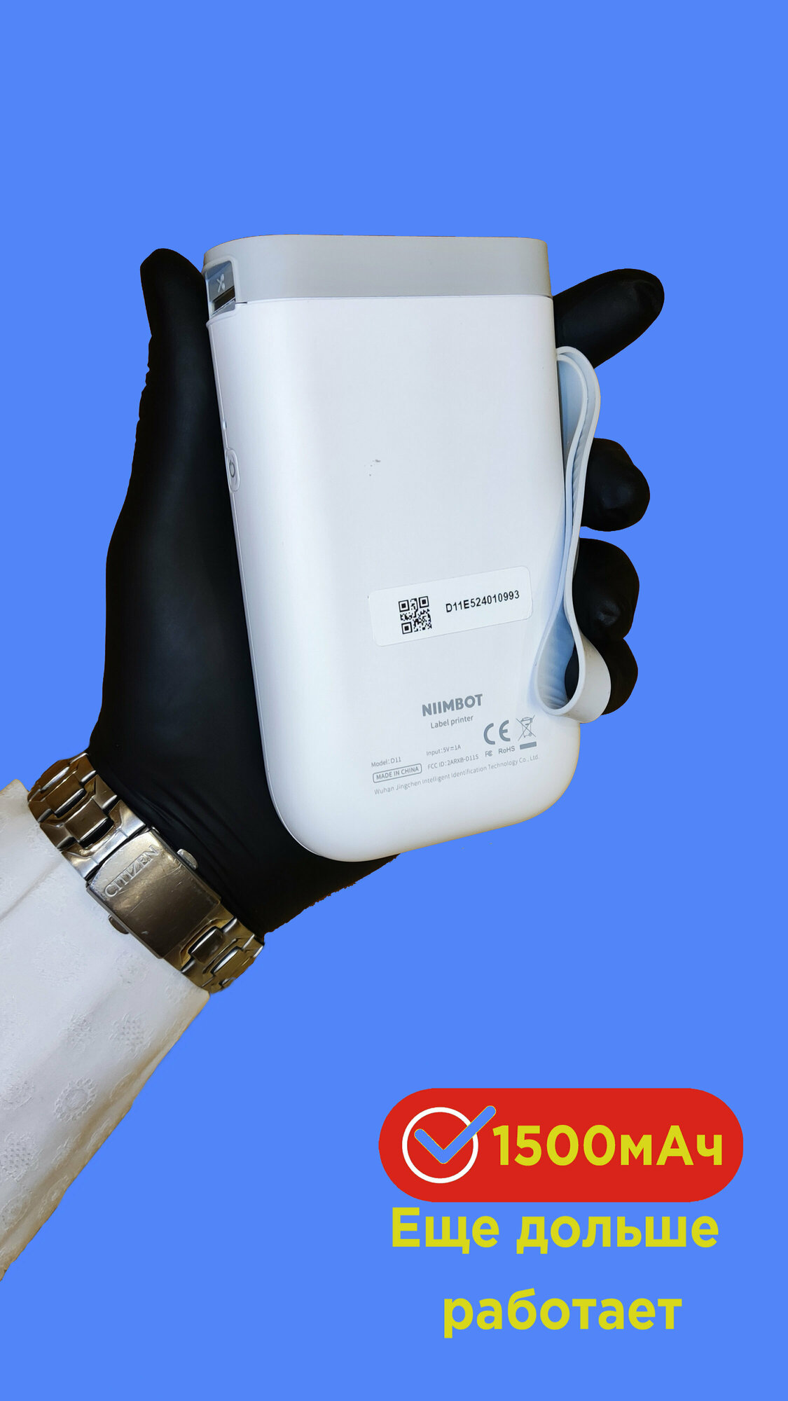 Термопринтер NIIMBOT D11 (1500мА/ч) белый. Печать: Наклейки, стикеры, этикетки, ценники, бирки, QR коды, честный знак.