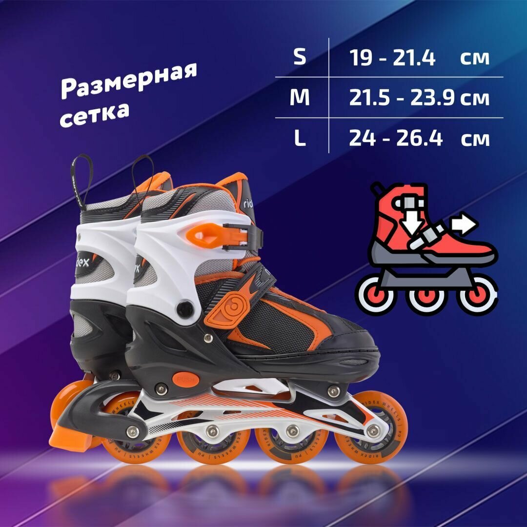 Ролики раздвижные Ridex Allure Orange, алюминиевая рама размер S (31-34) интересное: