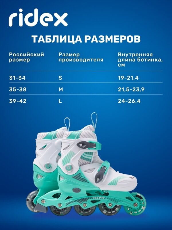 Ролики раздвижные RIDEX Swipe Mint, пласт. рама, S (31-34)