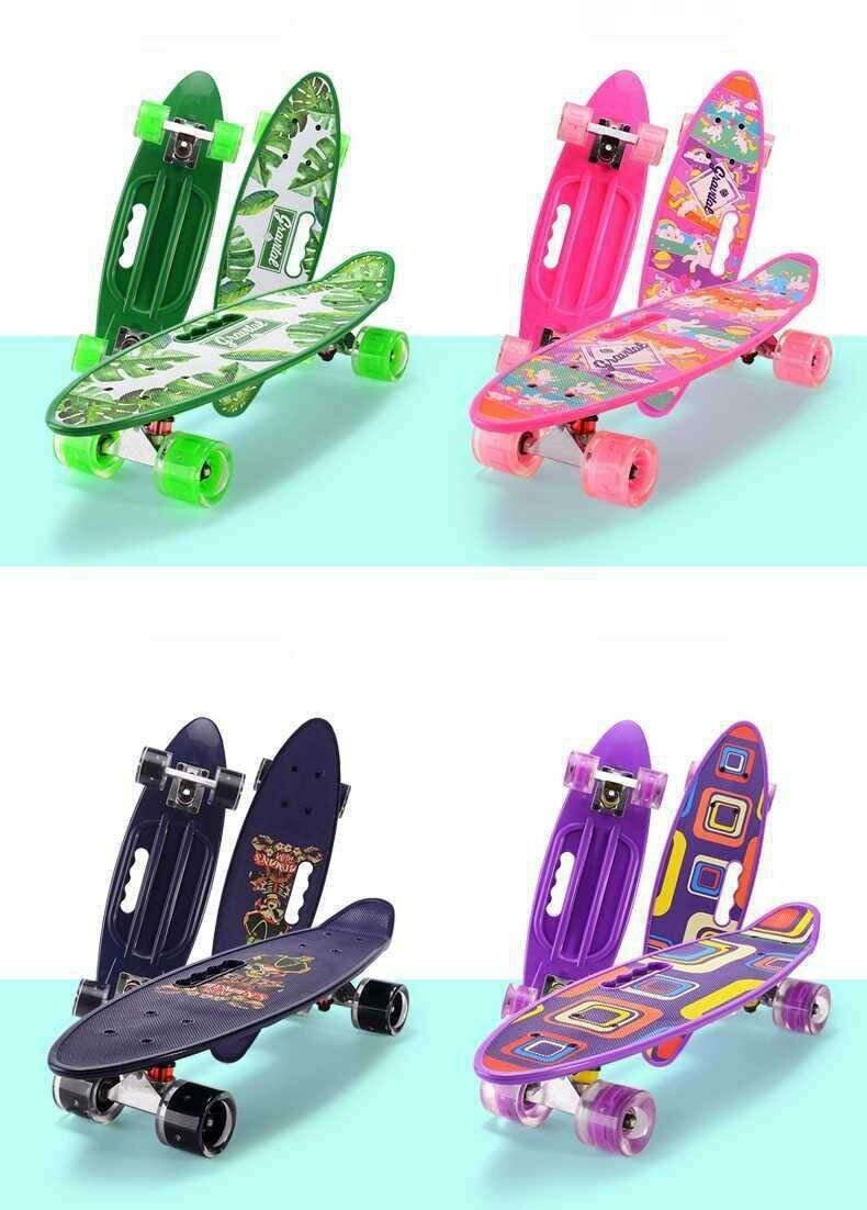 Скейтборд пенниборд детский взрослый со светящимися колёсами и ручкой , зеленый интересное: