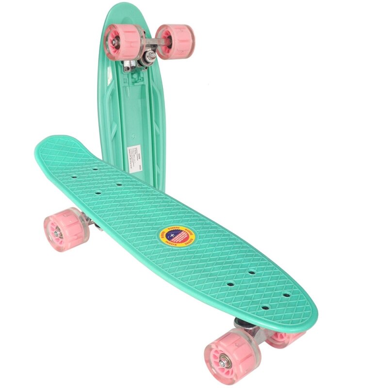 E33100 Скейтборд пластиковый 56x15cm со свет. колесами (аквамарин) (SK508)