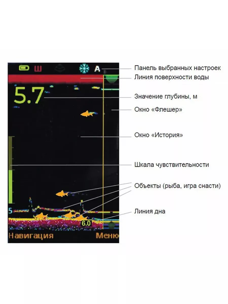 | Отображение структуры дна | есть |