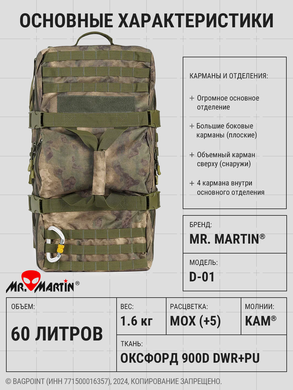 Сумка - рюкзак тактическая Mr.Martin D-01 60 л мультикам [60 л./]