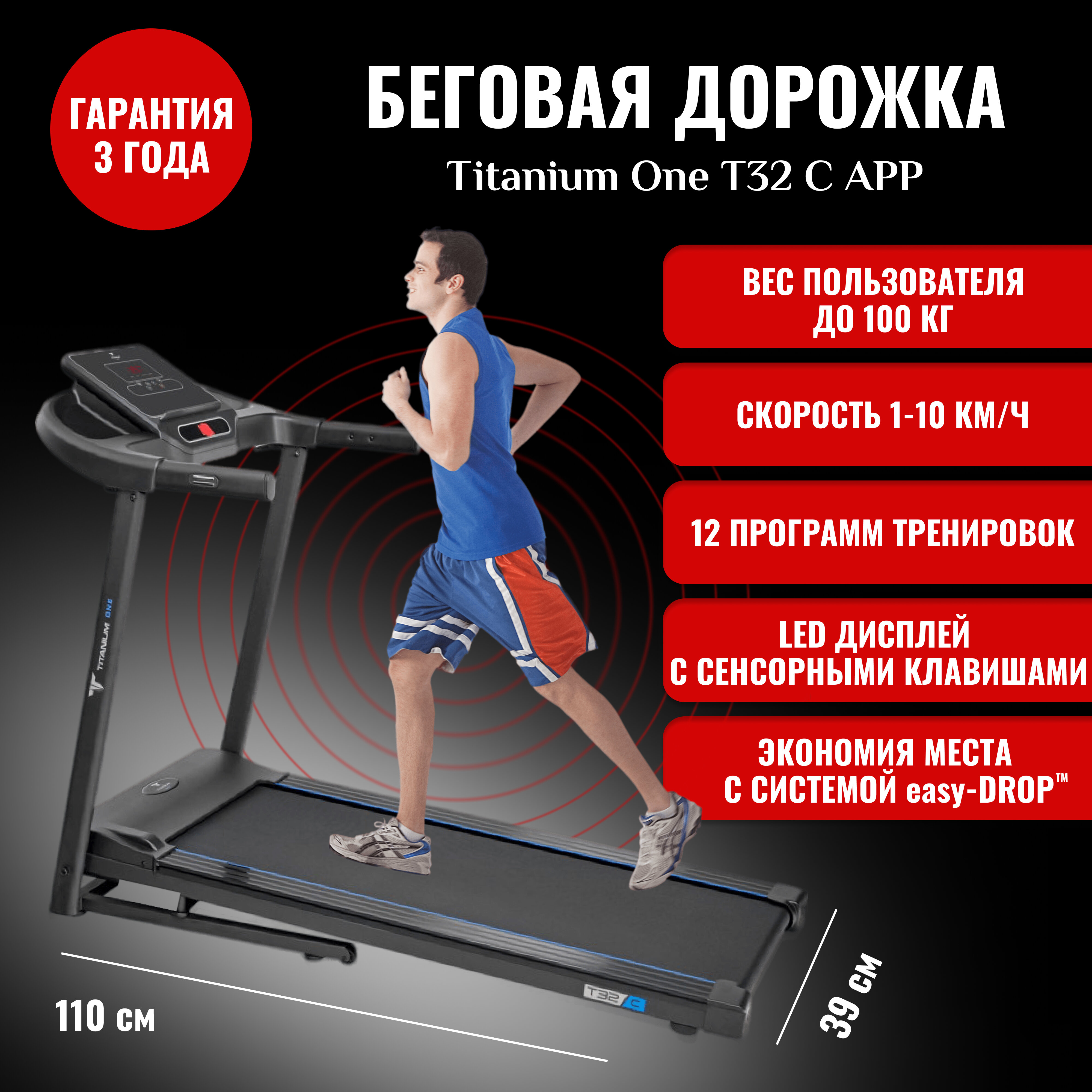 Беговая дорожка Titanium One T32 C APP / электрическая / складная / для дома / тренажер кардио интересное: