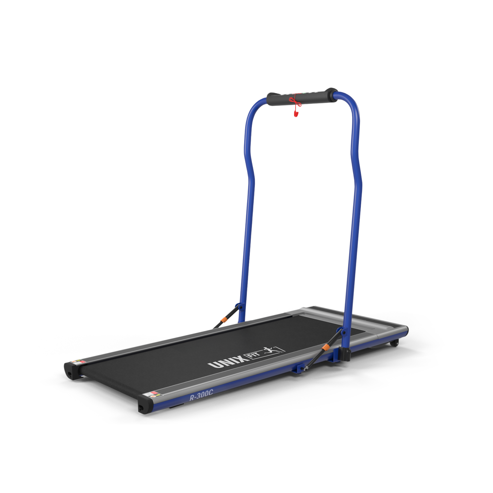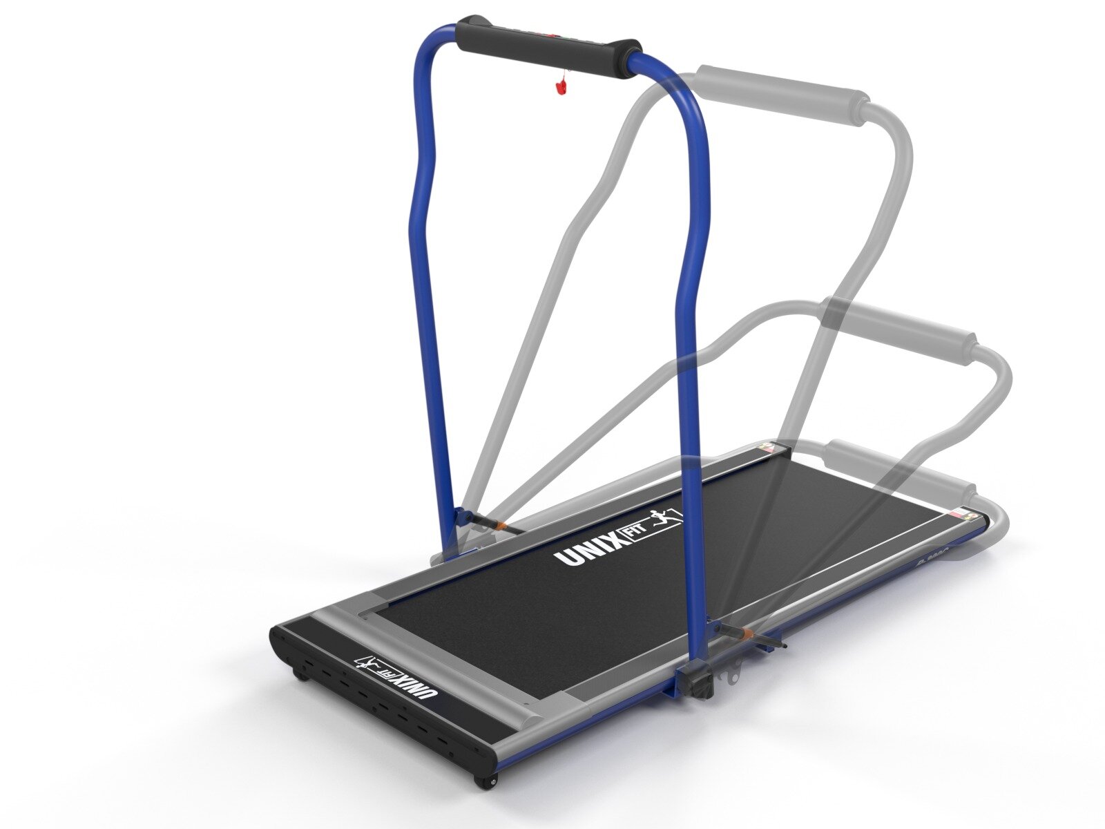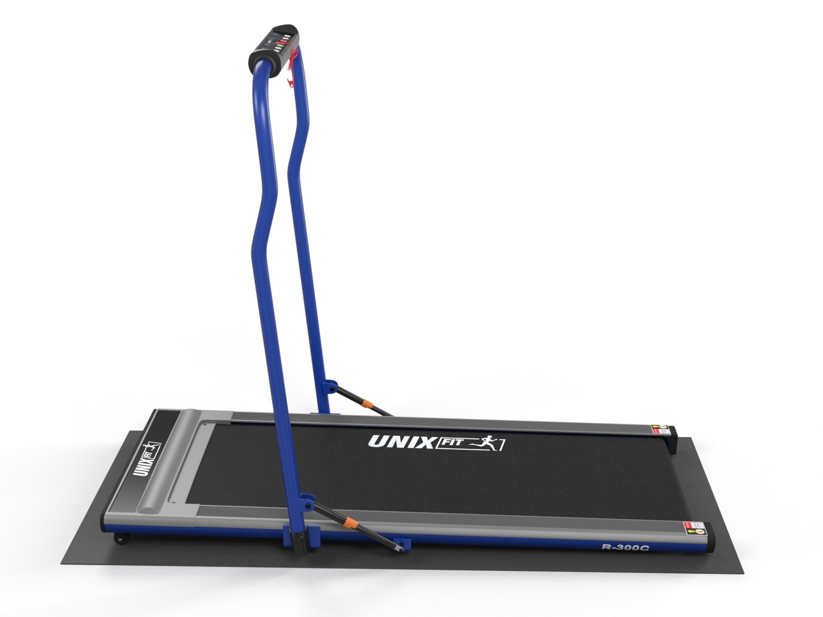 Беговая дорожка Unix Fit R-300C Blue с поручнем, мощность 1.5 л.с., до 100 кг, скорость 0.8 - 12 км/ч, 6 плоских эластомеров UNIXFIT