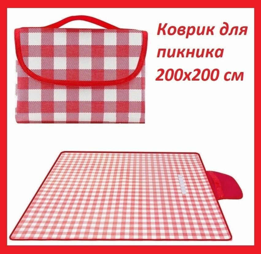 Купить Коврик для пикника 200х200 см / Покрывало для похода, кемпинга, пляжа, отдыха на природе и загара красное