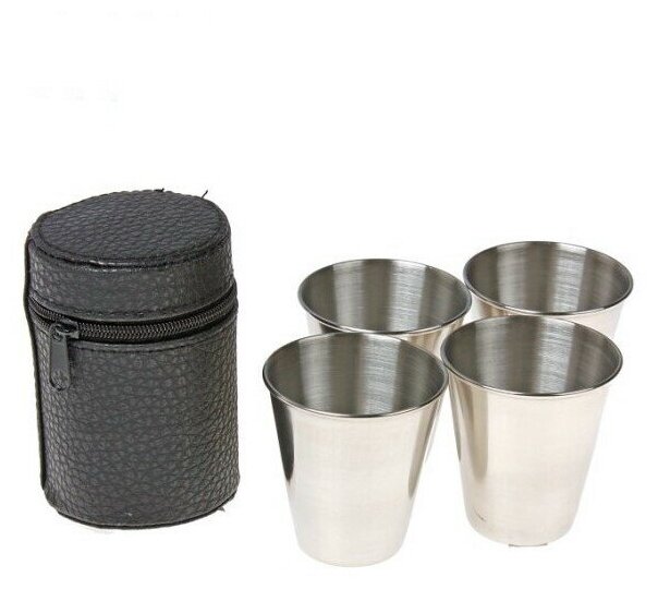 Стаканчик Следопыт стовочка в кожаной тубе (4 шт)