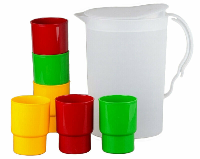 Набор пластиковой, многоразовой посуды SOLARIS: 6 стаканов 0,25л в кувшине интересное: