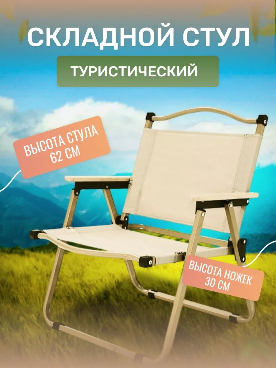 Стул складной туристический кресло для рыбалки и отдыха бежевый интересное: