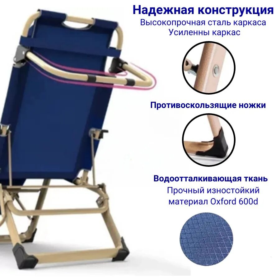 Раскладушка кровать туристическая походная взрослая шезлонг, синий интересное: