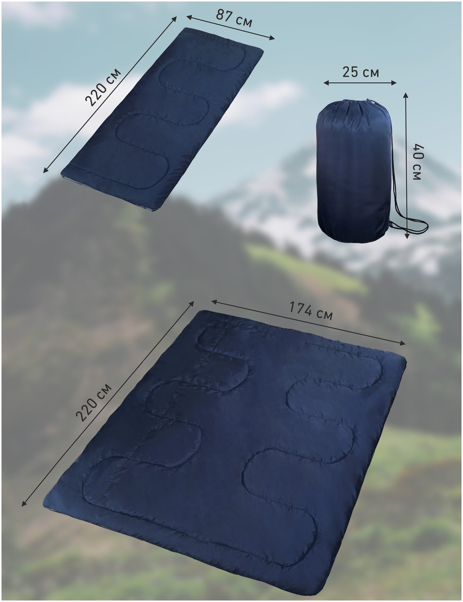 Спальник туристический "чайка" СО2, 2-х слойное одеяло, 75Х200 см, синий
