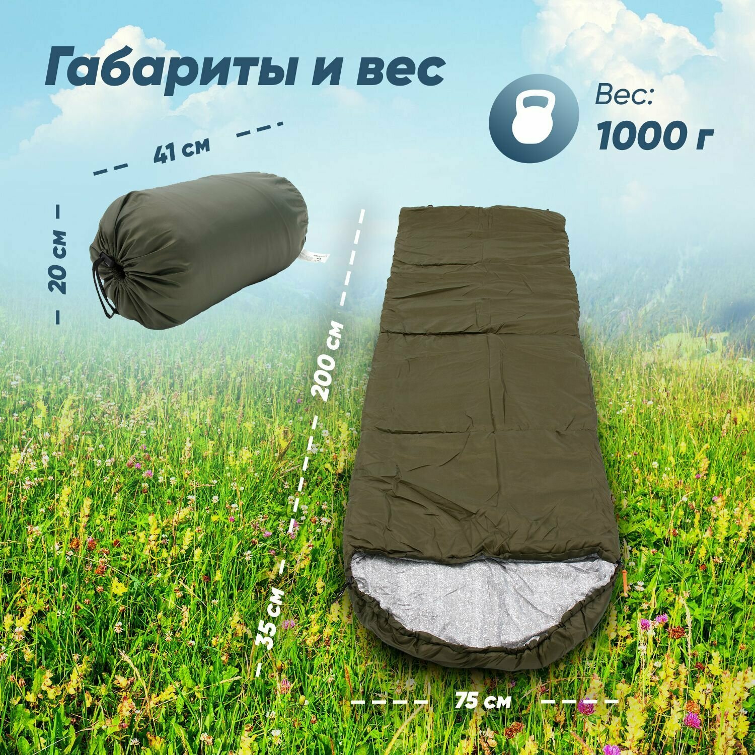 Спальный мешок туристический с подголовником "следопыт- Traveller XL", 190+35х85 см, до 0С, 3х слойный, цв.хаки / Спальник туристический / Одеяло туристическое