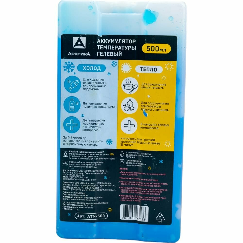 Аккумулятор холода Арктика АТМ-500 Хладоэлемент для термосумки 500 мл интересное: