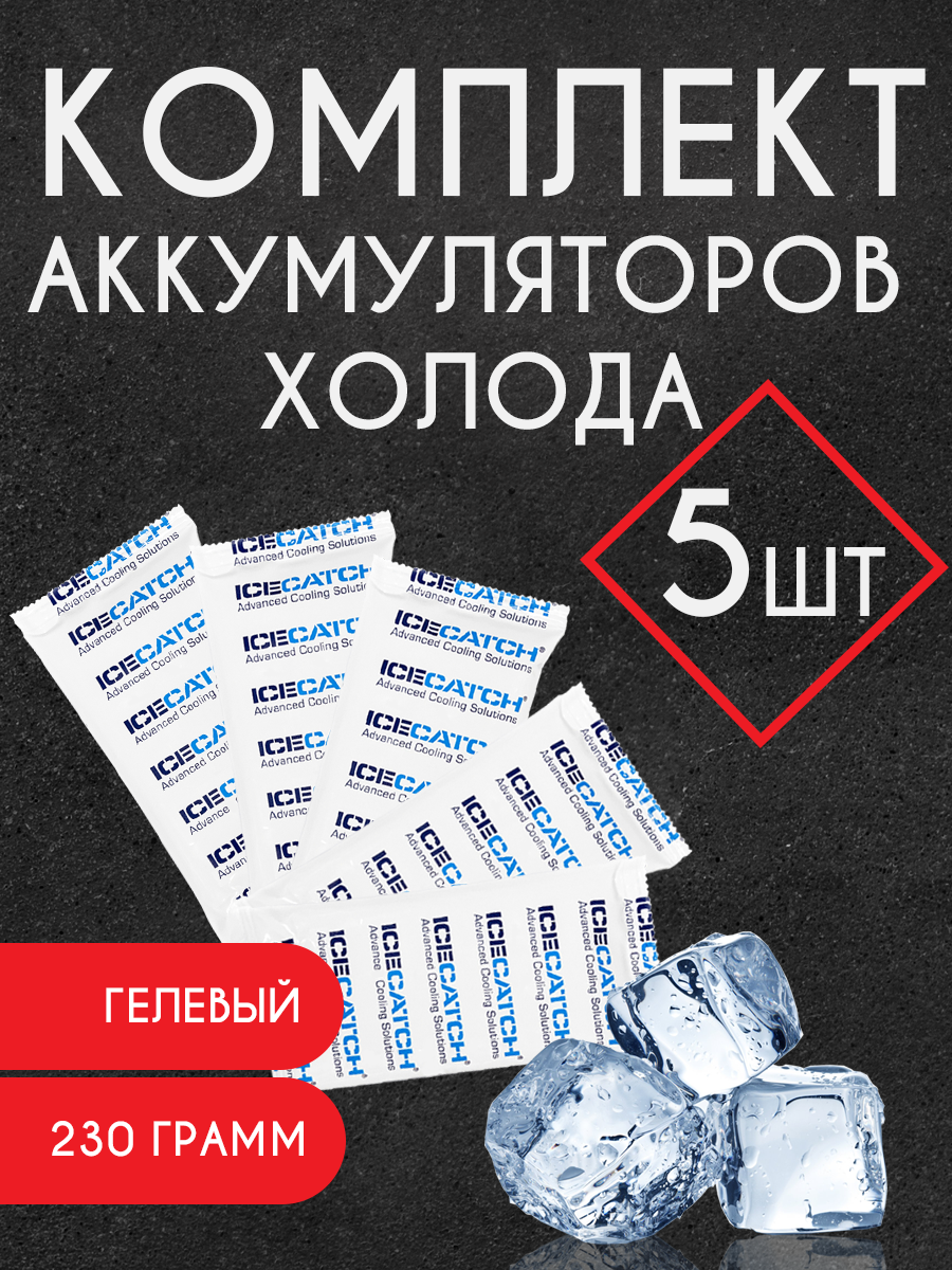 Комплект (5 шт.) аккумуляторов холода ICECATCH для термосумки, термоконтейнера гелевый ICECATCH, 230 г. интересное:
