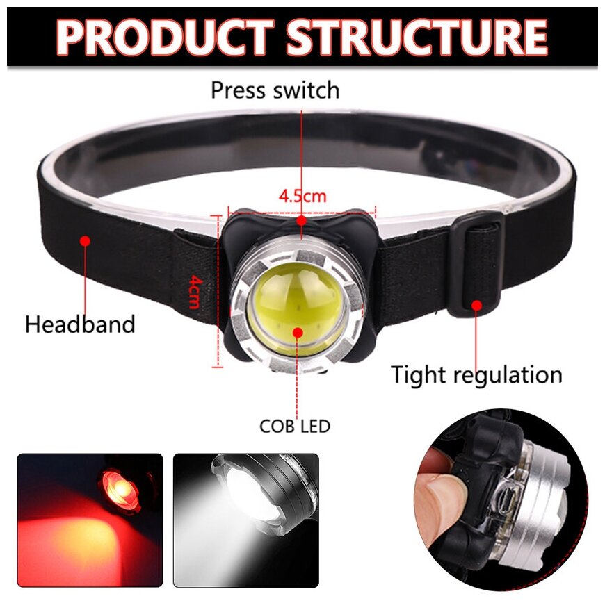Легкий налобный светодиодный фонарь LED COB, 3 режима, легкий и компактный интересное: