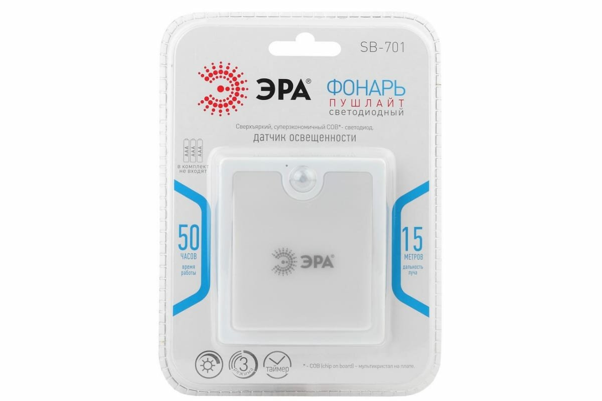 ЭРА SB-701 Фонарь ЭРА пушлайт + датчик [диммер, датчик света, 3хААА, бл] (24/48/1440) интересное: