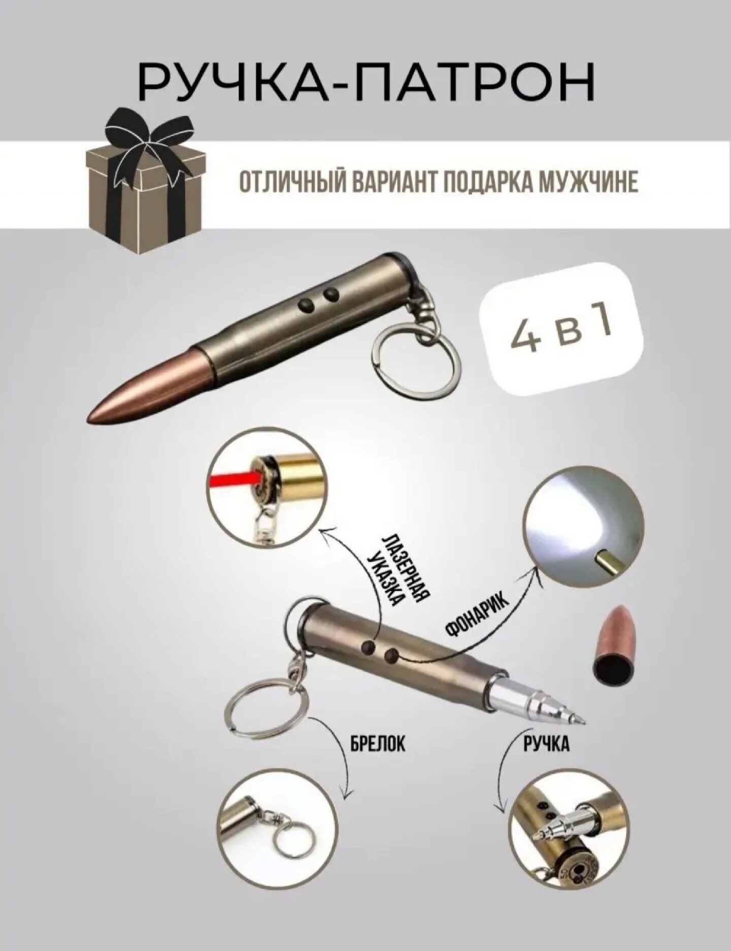 Брелок, фонарик, лазерная указка, ручка в виде "Патрона" 4 в 1 интересное: