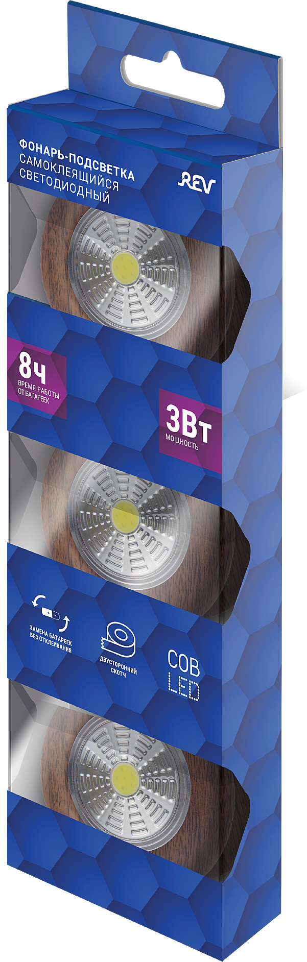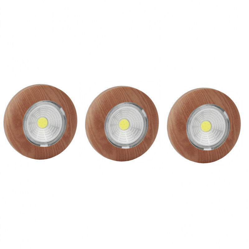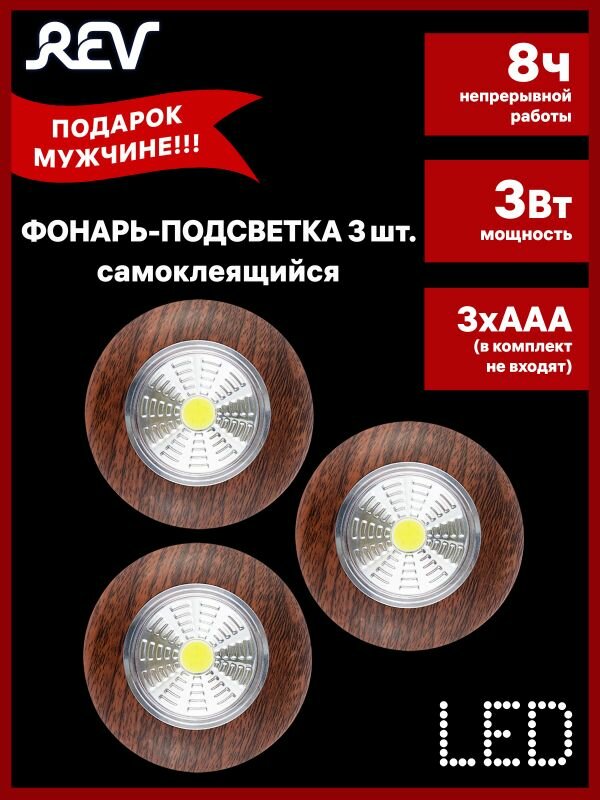 Светодиодный самоклеящийся фонарь-подсветка Rev Pushlight 3Pack дерево, COB 3 Вт, бат. 3xAAA